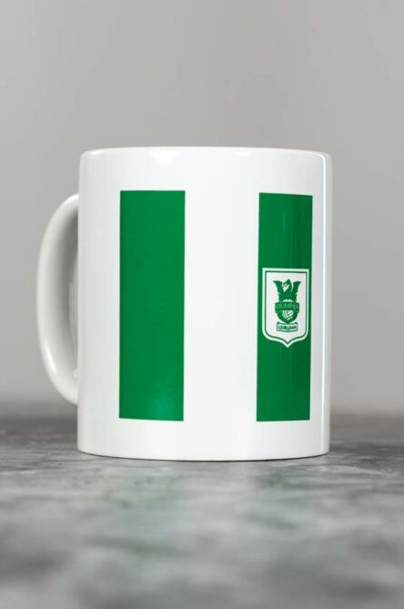 White cup with a green Olimpija inscription. Made from high-quality ceramic and suitable for both hot and cold drinks. Its clean, distinctive design makes it perfect for home, office or as a gift for any Green & White supporter.