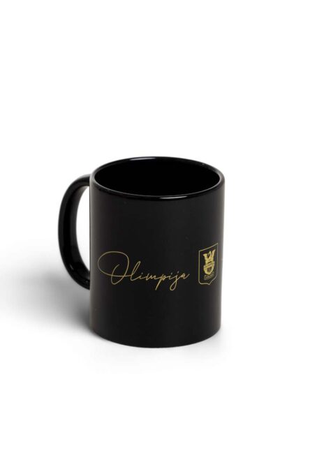 Black cup featuring a golden Olimpija Ljubljana inscription and crest. The elegant black-and-gold combination gives it a modern, refined look. Perfect for everyday use or as a special gift for fans who appreciate quality, aesthetics and club pride.