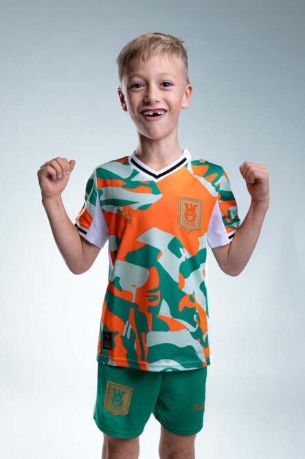 Children’s T-shirt featuring a 3D Olimpija Ljubljana crest in green, white, black and beige. Made from 100% cotton for all-day softness, breathability and comfort. The high-quality 3D print adds a dynamic, modern look to a classic supporters’ shirt — perfect for sporting events or everyday wear when you want to show your Green & White pride.