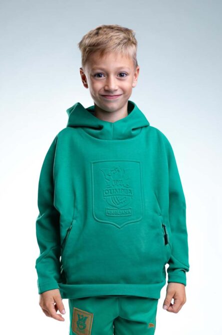 Children’s jumper featuring a 3D Olimpija Ljubljana print in green, white, beige and black. Made from warm, comfortable material that keeps young fans cosy on colder days while allowing easy movement. The modern 3D crest highlights club pride, making it perfect for everyday wear, school or cheering at matches.